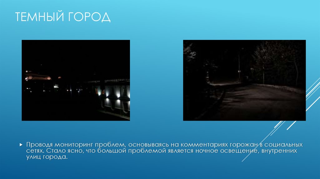 ТЕМНЫЙ ГОРОДПроводя мониторинг проблем, основываясь на комментариях горожан в социальных