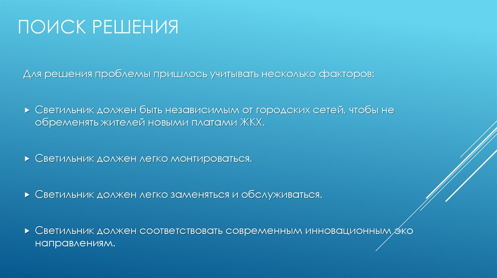 ПОИСК РЕШЕНИЯДля решения проблемы пришлось учитывать несколько факторов: