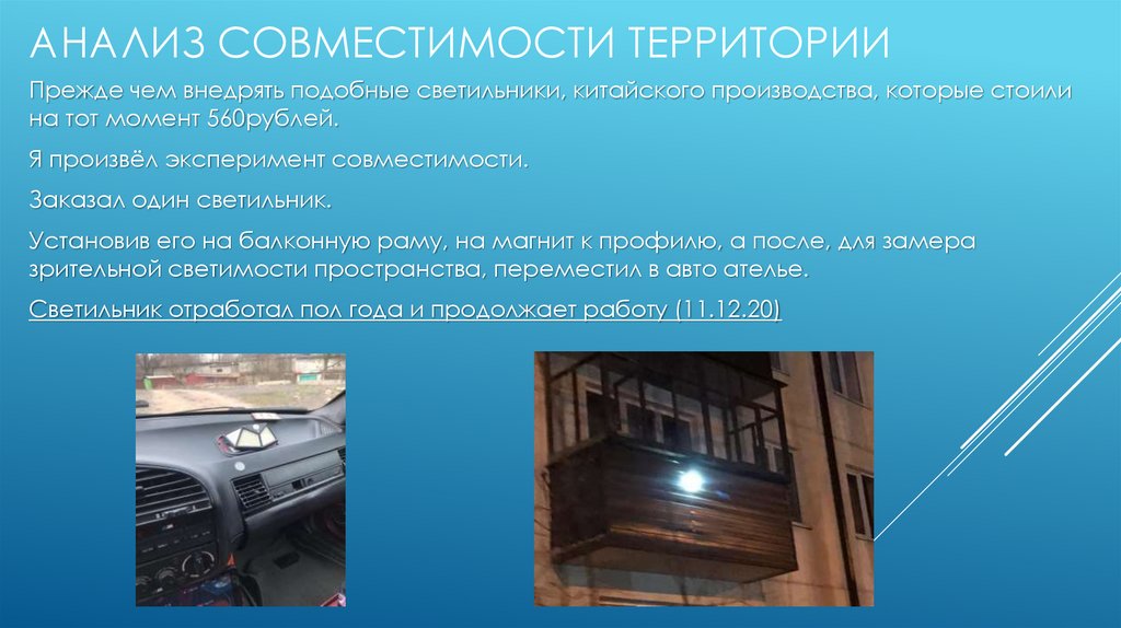 АНАЛИЗ СОВМЕСТИМОСТИ ТЕРРИТОРИИПрежде чем внедрять подобные светильники, китайского производства, которые стоили