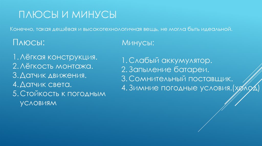 ПЛЮСЫ И МИНУСЫКонечно, такая дешёвая и высокотехнологичная вещь, не могла быть идеальной.