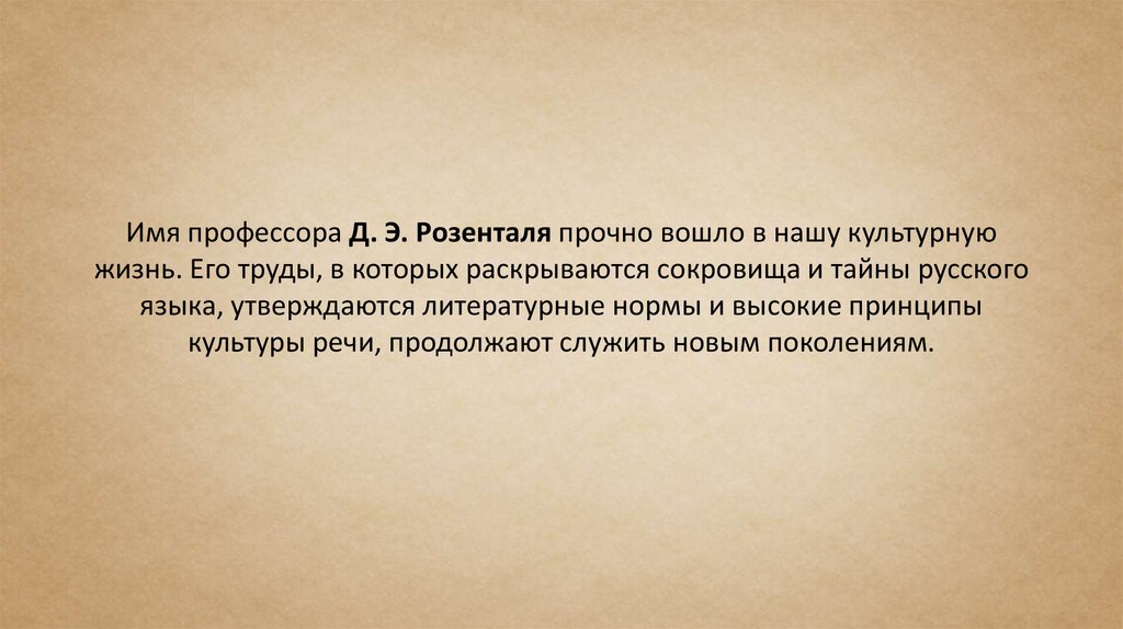 Имя профессора Д. Э. Розенталя прочно вошло в нашу культурнуюжизнь. Его труды, в которых раскрываются сокровища и тайны русского