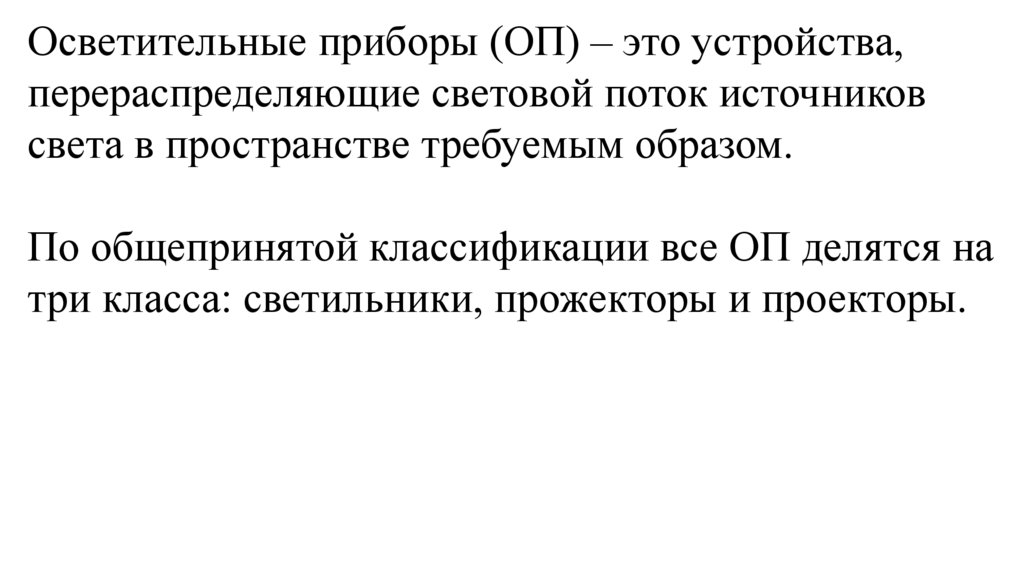 Осветительные приборы (ОП) – это устройства,перераспределяющие световой поток источников