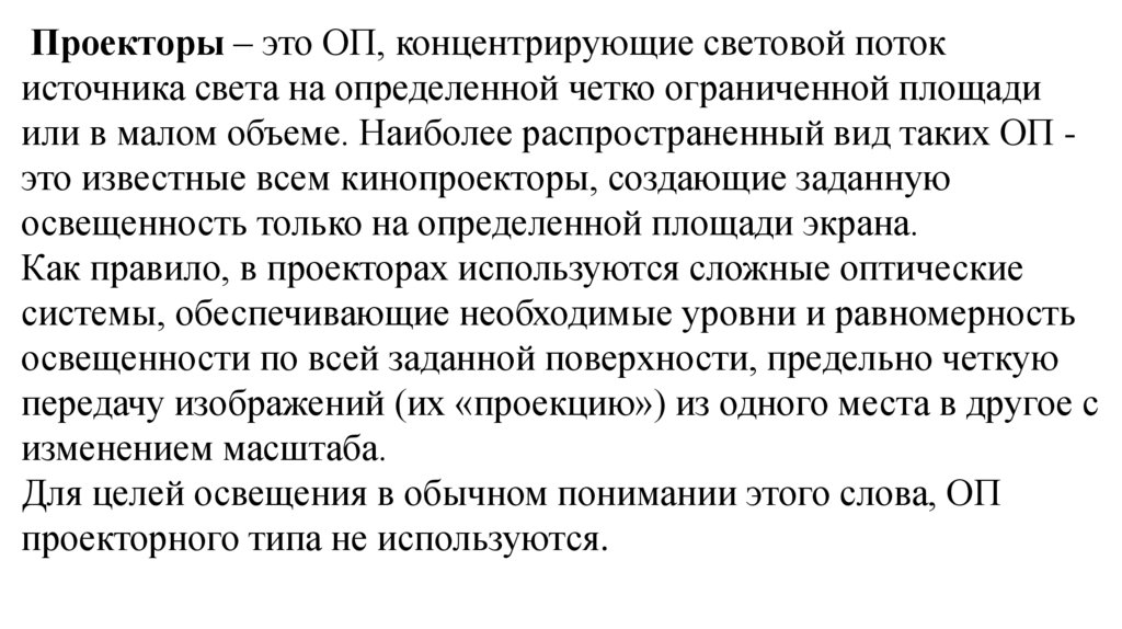 Проекторы – это ОП, концентрирующие световой потокисточника света на определенной четко ограниченной площади