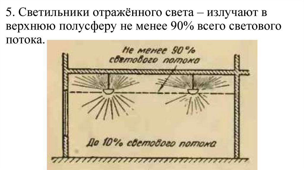 5. Светильники отражённого света – излучают вверхнюю полусферу не менее 90% всего светового