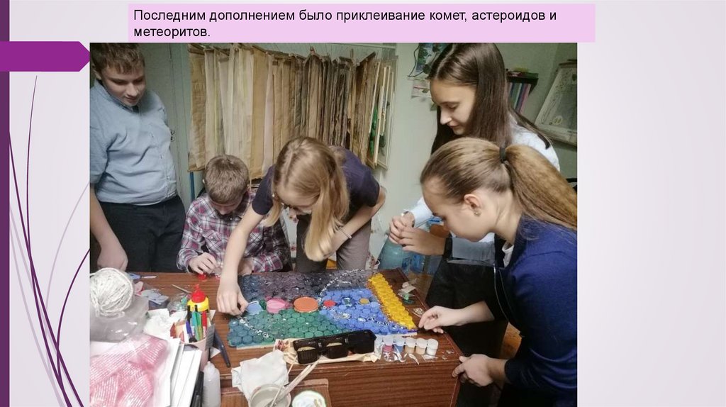 Последним дополнением было приклеивание комет, астероидов иметеоритов.