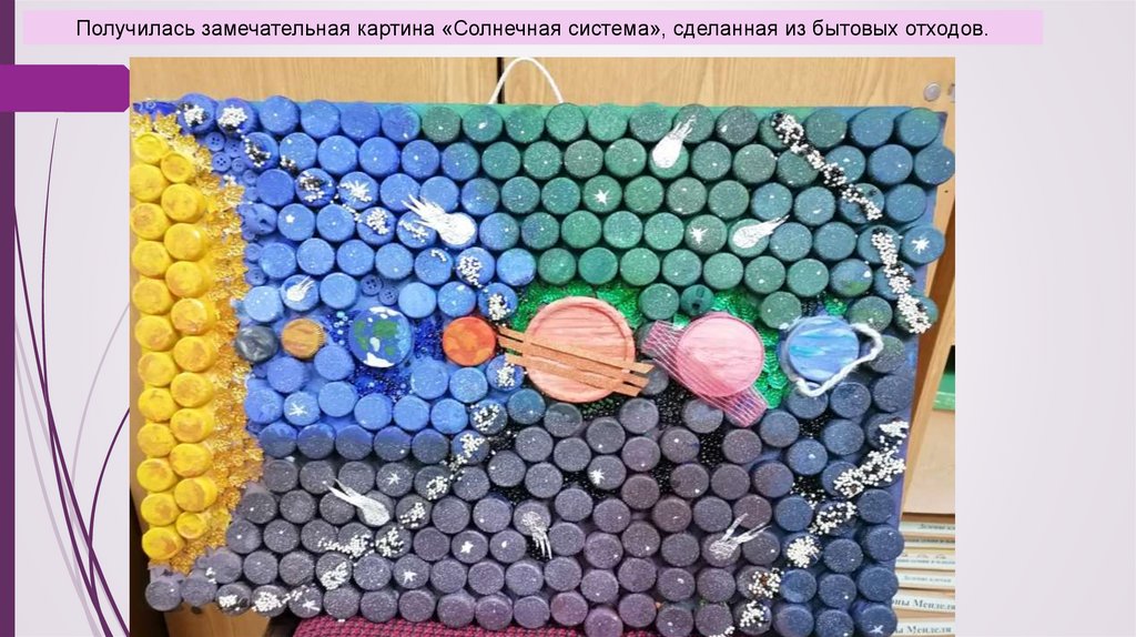 Получилась замечательная картина «Солнечная система», сделанная из бытовых отходов.16.