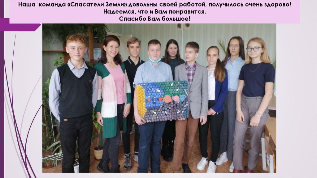 Наша команда «Спасатели Земли» довольны своей работой, получилось очень здорово!Надеемся, что и Вам понравится.