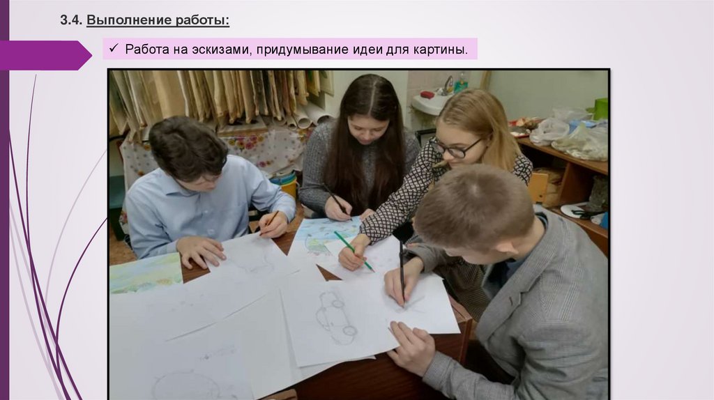 3.4. Выполнение работы (рисование эскизов; приклеивание
