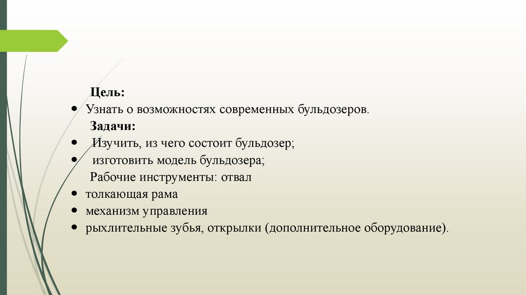Цель:Узнать о возможностях современных бульдозеров.