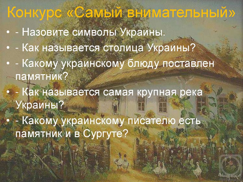 Конкурс «Самый внимательный»• - Назовите символы Украины.