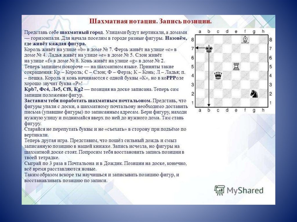 Шахматная нотация. Занятие 2.Составитель:Калюжина М.М.
