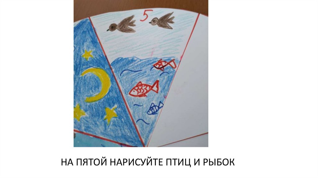 НА ПЯТОЙ НАРИСУЙТЕ ПТИЦ И РЫБОК11.