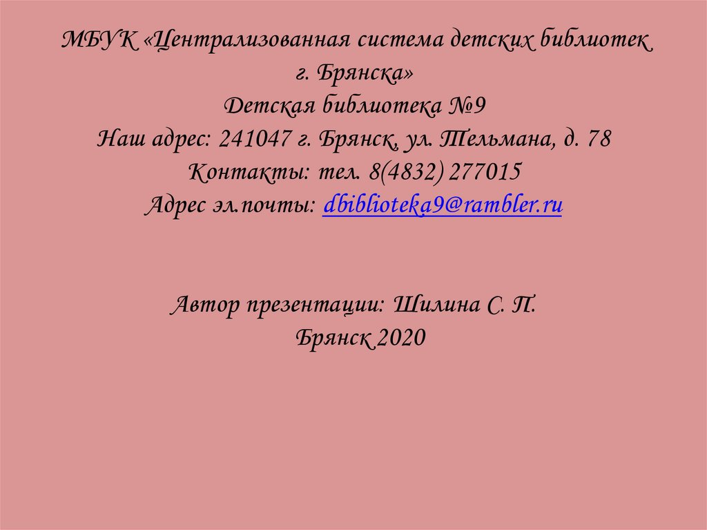 Адрес эл.почты: dbiblioteka9@rambler.ru