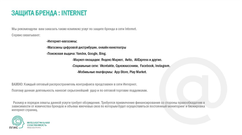 ЗАЩИТА БРЕНДА: INTERNETПРОГРАММА ВКЛЮЧАЕТ В СЕБЯ: