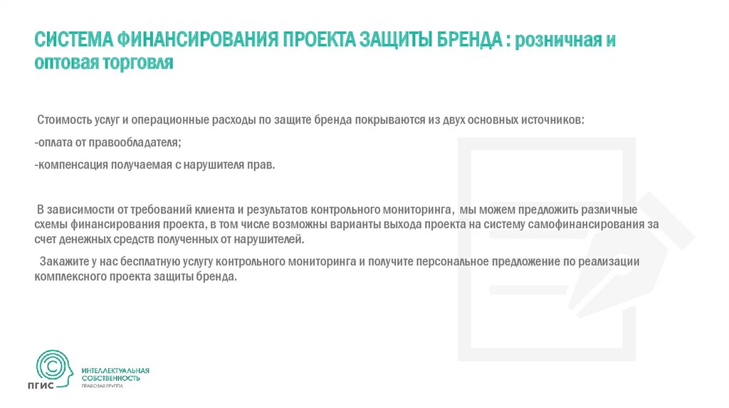 СИСТЕМА ФИНАНСИРОВАНИЯ ПРОЕКТАЗАЩИТЫ БРЕНДА :
