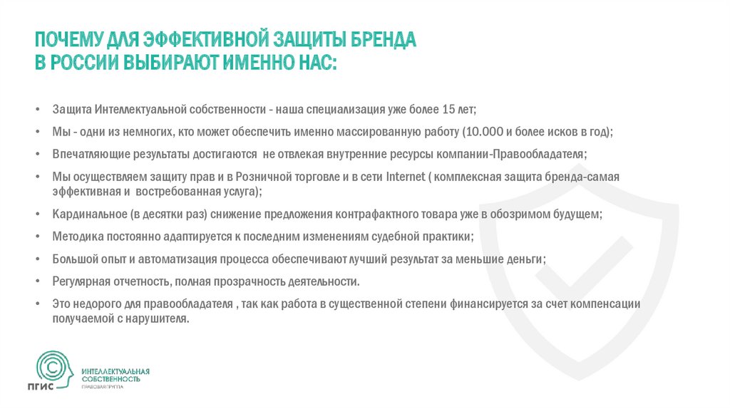 ПОЧЕМУ ДЛЯ ЭФФЕКТИВНОЙ ЗАЩИТЫ БРЕНДАВ РОССИИ ВЫБИРАЮТ ИМЕННО НАС: