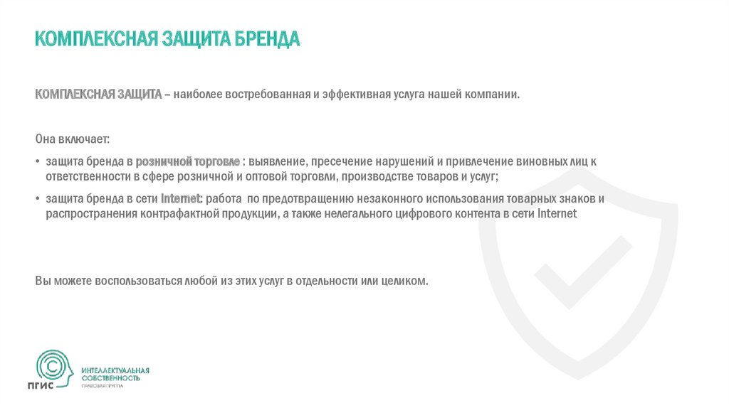 КОМПЛЕКСНАЯ ЗАЩИТА БРЕНДАКОМПЛЕКСНАЯ ЗАЩИТА – наиболее востребованная и эффективная услуга нашей компании.
