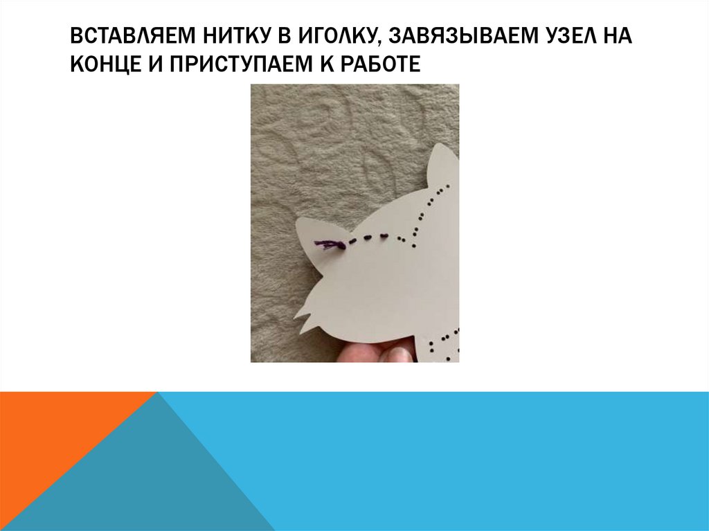 ВСТАВЛЯЕМ НИТКУ В ИГОЛКУ, ЗАВЯЗЫВАЕМ УЗЕЛ НАКОНЦЕ И ПРИСТУПАЕМ К РАБОТЕ