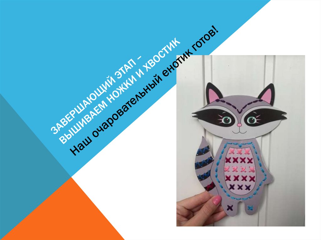 Вышивка на картоне. Енотик