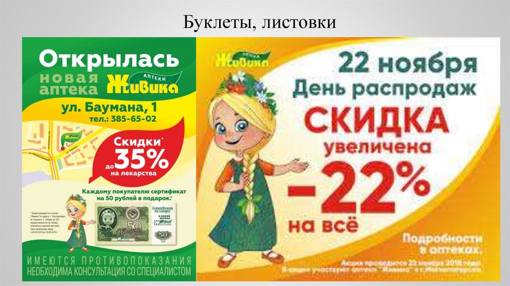 Используются печатные материалы, фармацевты постоянно предлагают препараты по