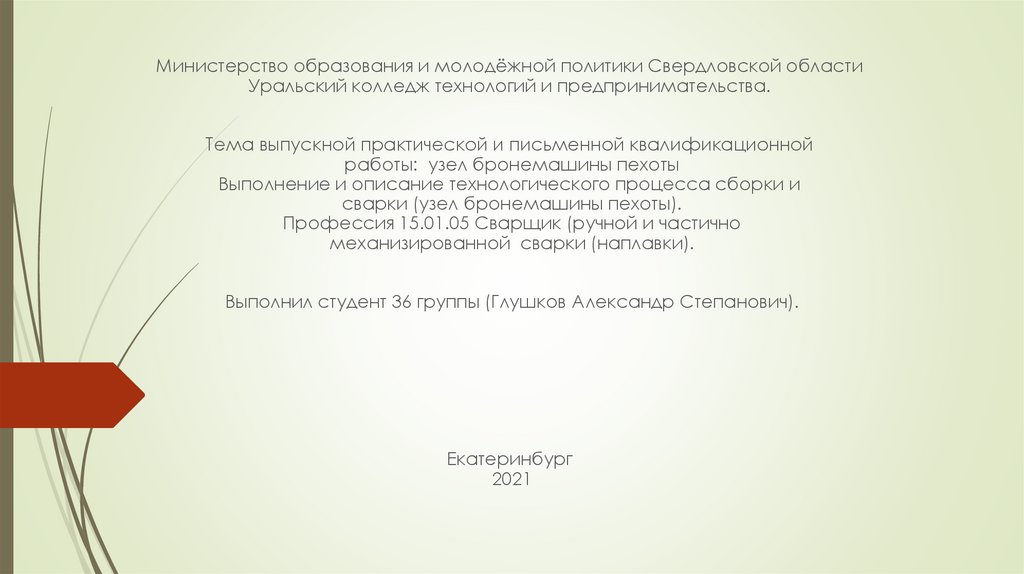 Министерство образования и молодёжной политики Свердловской областиУральский колледж технологий и предпринимательства.