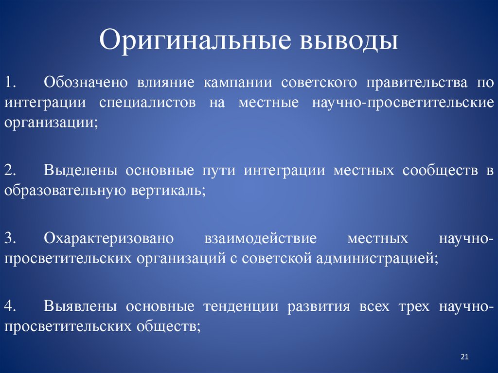 Оригинальные выводы1.