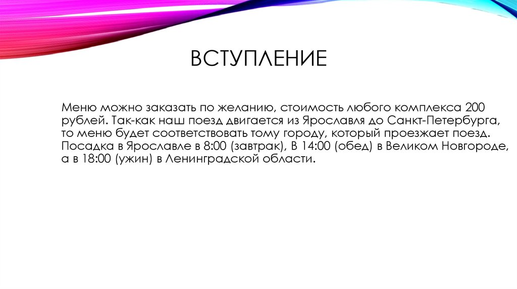 МЕНЮ В ПОЕЗДЕСелихова Мария, г. Ярославль