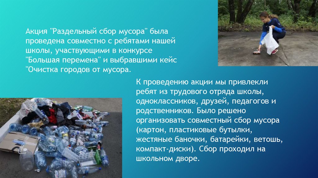 Акция "Раздельный сбор мусора" былапроведена совместно с ребятами нашей