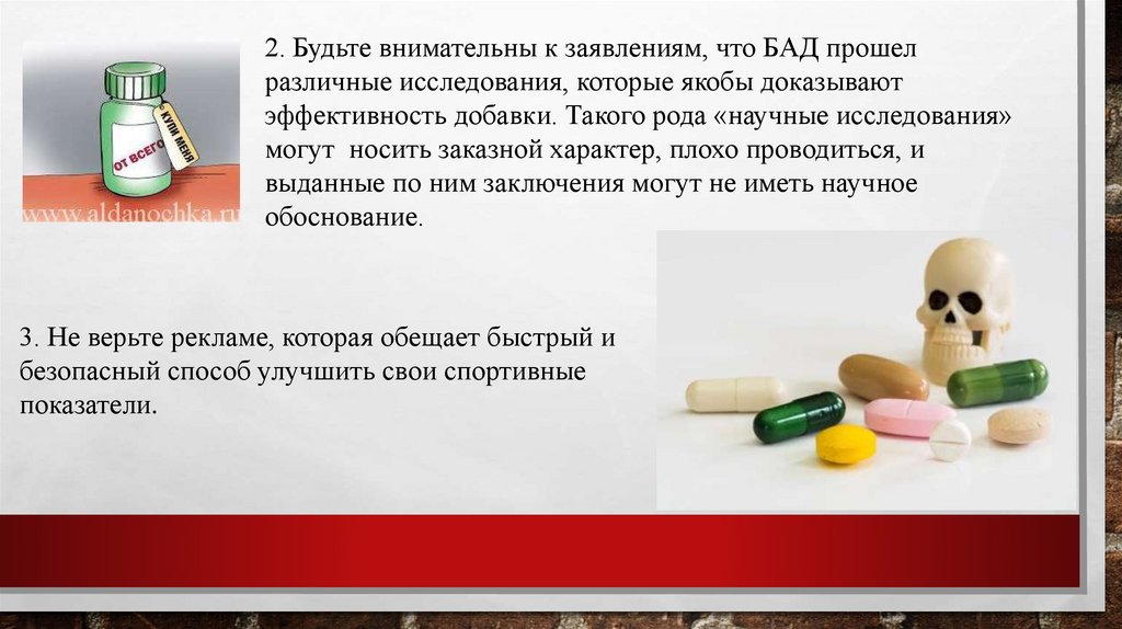 2. Будьте внимательны к заявлениям, что БАД прошелразличные исследования, которые якобы доказывают