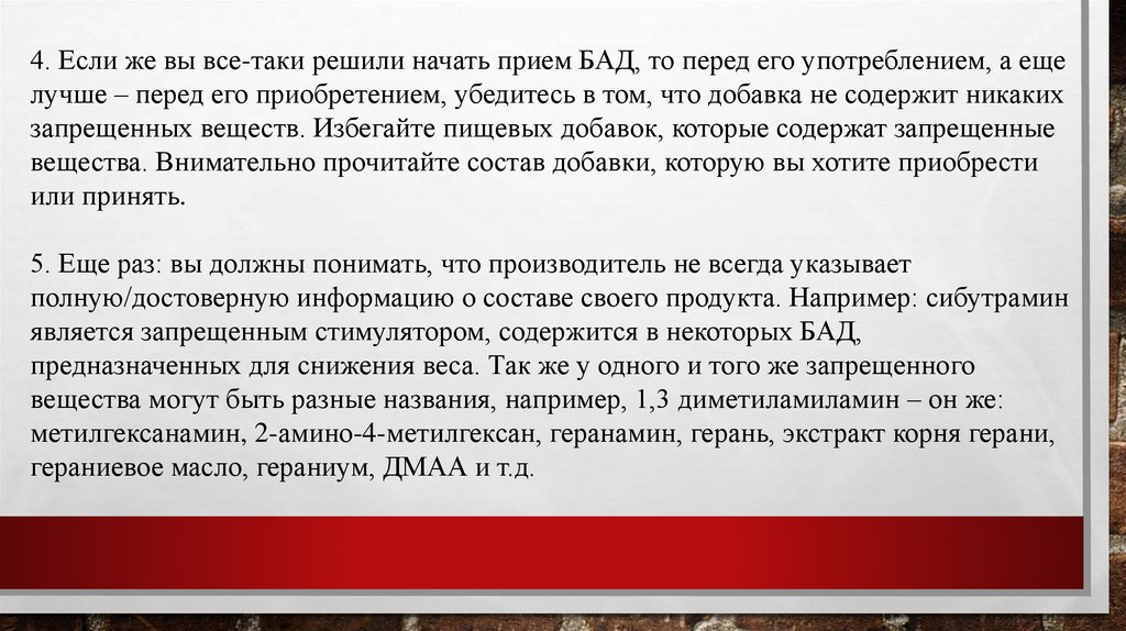 запрещенных веществ. Избегайте пищевых добавок, которые содержат запрещенные