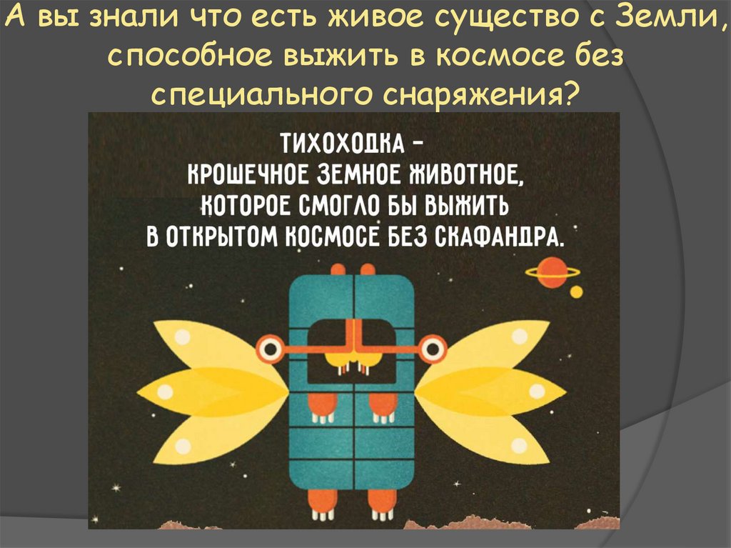 А вы знали что есть живое существо с Земли,способное выжить в космосе без