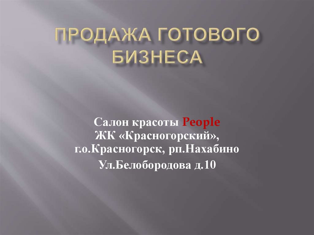 Продажа готового бизнеса. Салон красоты "People" ЖК «Красногорский»,
