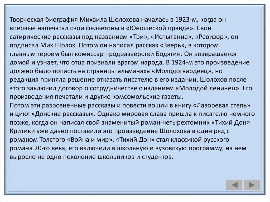 и цикл «Донские рассказы». Однако мировая слава пришла к писателю немного