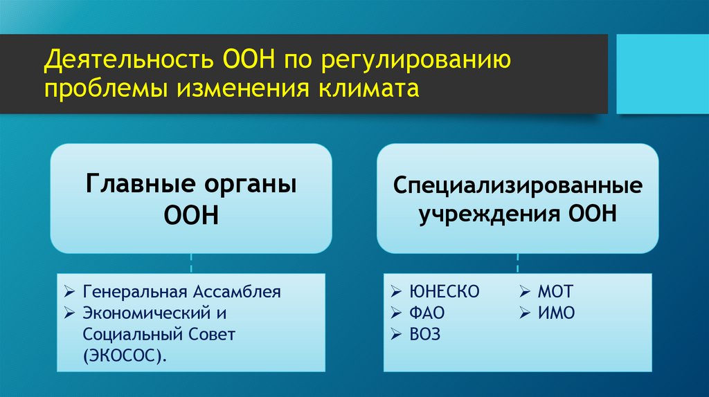 Деятельность ООН по регулированиюпроблемы изменения климата
