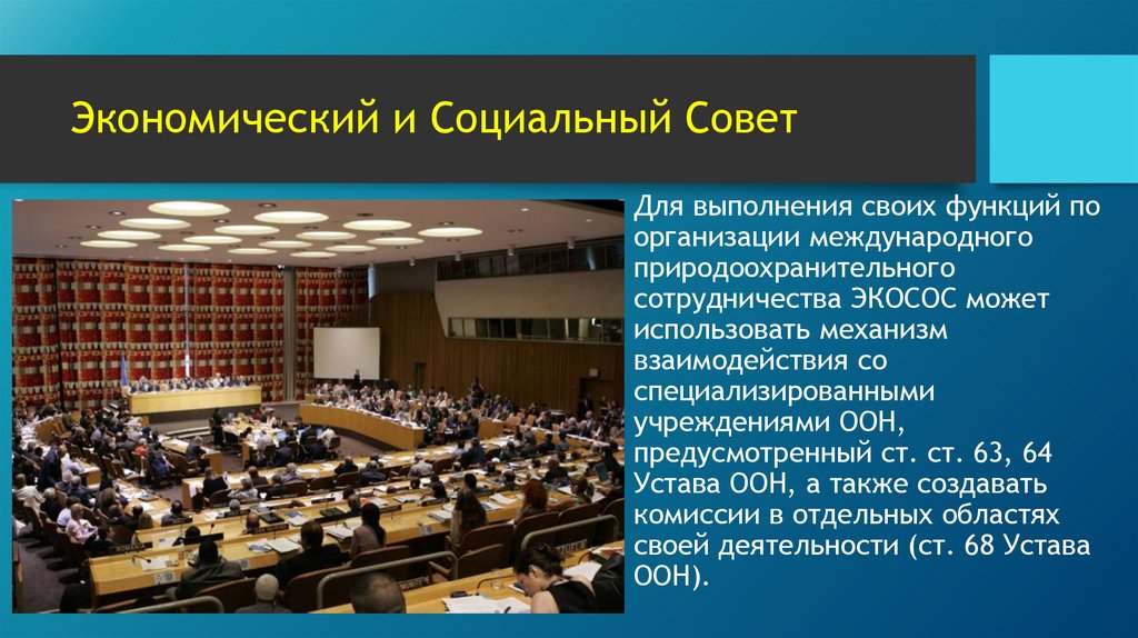 Экономический и Социальный СоветДля выполнения своих функций по