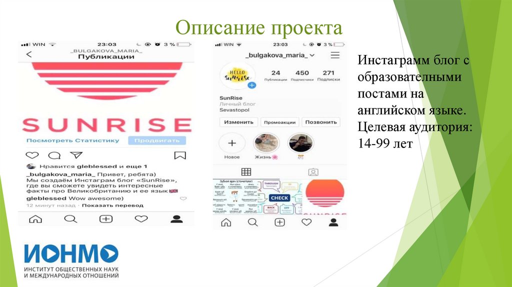 Инстаграмм Блог «SUNRISE»Мы представляем инстаграмм блог в котором будут публиковаться образовательные посты