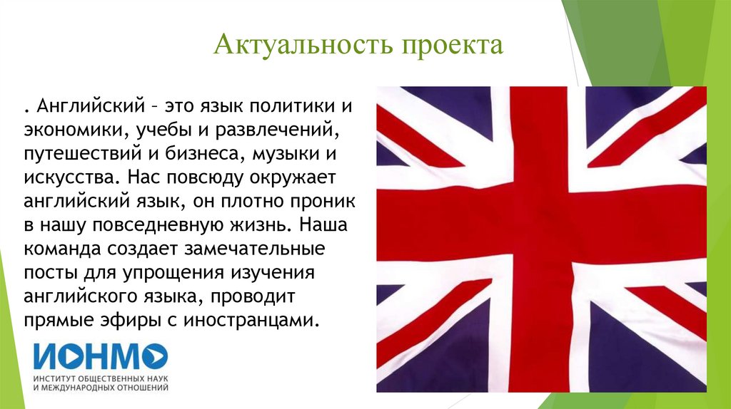 Актуальность проекта. Английский – это язык политики и