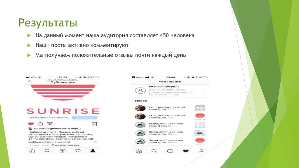 РезультатыНа данный момент наша аудитория составляет 450 человека