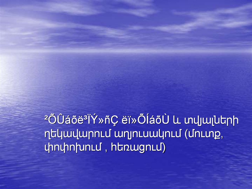²ÕÛáõë³ÏÝ»ñÇ ëï»ÕÍáõÙ և տվյալներիղեկավարում աղյուսակում (մուտք,