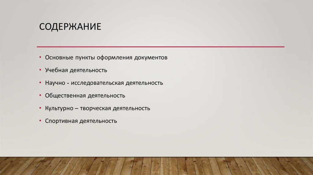СОДЕРЖАНИЕ• Основные пункты оформления документов
