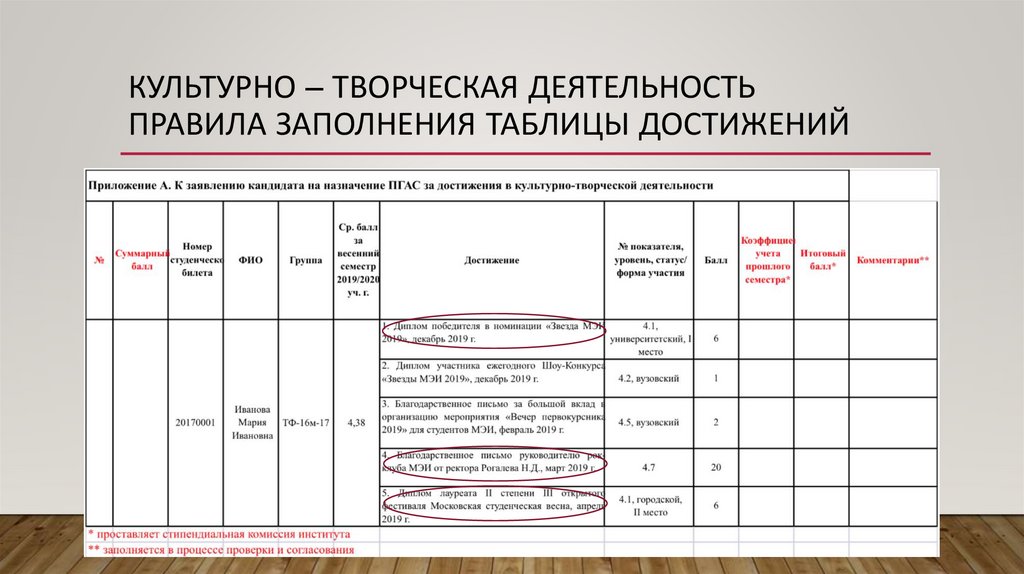 КУЛЬТУРНО – ТВОРЧЕСКАЯ ДЕЯТЕЛЬНОСТЬПРАВИЛА ЗАПОЛНЕНИЯ ТАБЛИЦЫ ДОСТИЖЕНИЙ