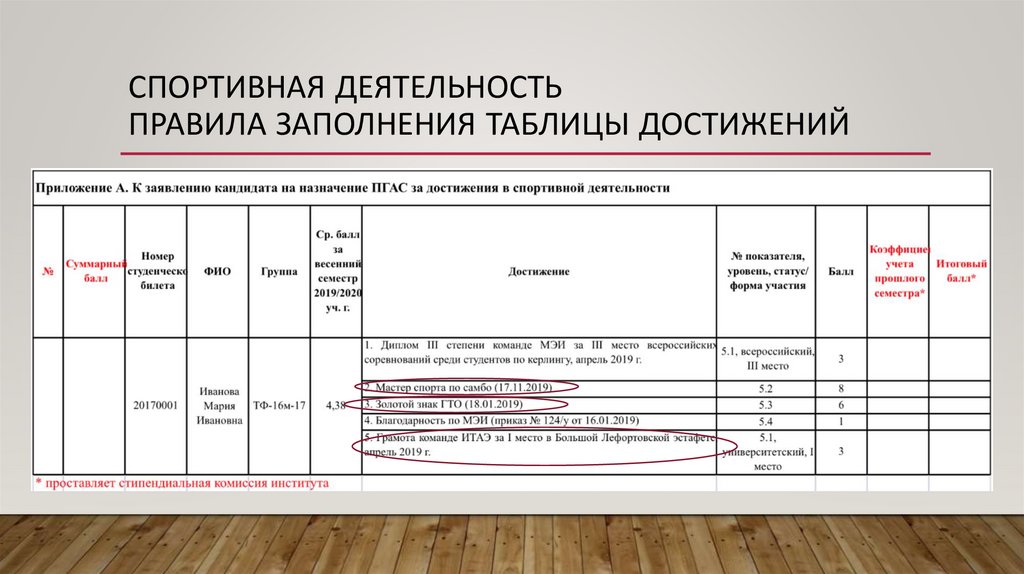 СПОРТИВНАЯ ДЕЯТЕЛЬНОСТЬПРАВИЛА ЗАПОЛНЕНИЯ ТАБЛИЦЫ ДОСТИЖЕНИЙ