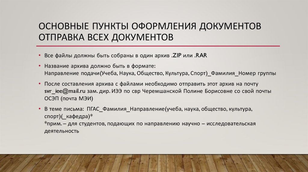 • После составления архива с файлами необходимо отправить этот архив на почту
