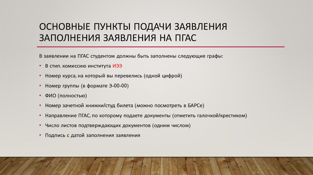 Заполнения заявления на ПГАС
