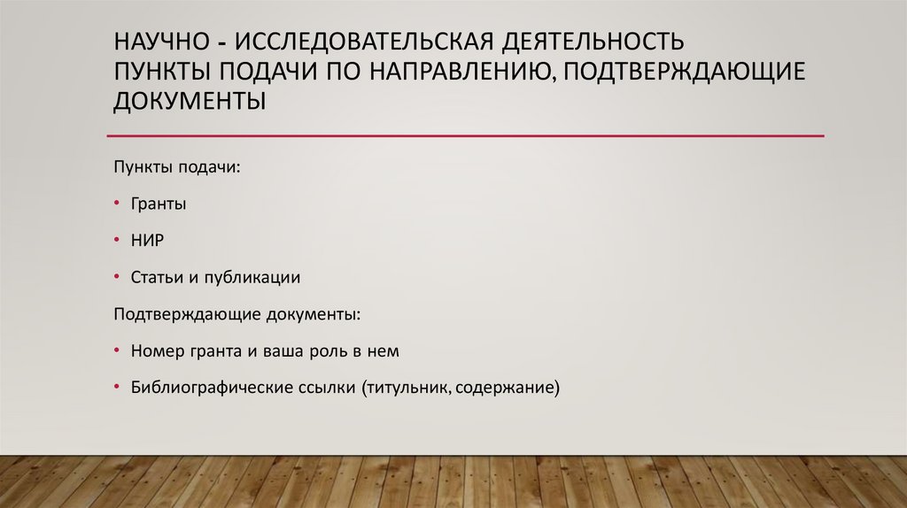 НАУЧНО - ИССЛЕДОВАТЕЛЬСКАЯ ДЕЯТЕЛЬНОСТЬПУНКТЫ ПОДАЧИ ПО НАПРАВЛЕНИЮ, ПОДТВЕРЖДАЮЩИЕ