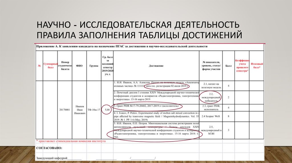 НАУЧНО - ИССЛЕДОВАТЕЛЬСКАЯ ДЕЯТЕЛЬНОСТЬПРАВИЛА ЗАПОЛНЕНИЯ ТАБЛИЦЫ ДОСТИЖЕНИЙ