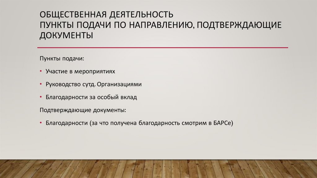 ОБЩЕСТВЕННАЯ ДЕЯТЕЛЬНОСТЬПУНКТЫ ПОДАЧИ ПО НАПРАВЛЕНИЮ, ПОДТВЕРЖДАЮЩИЕ