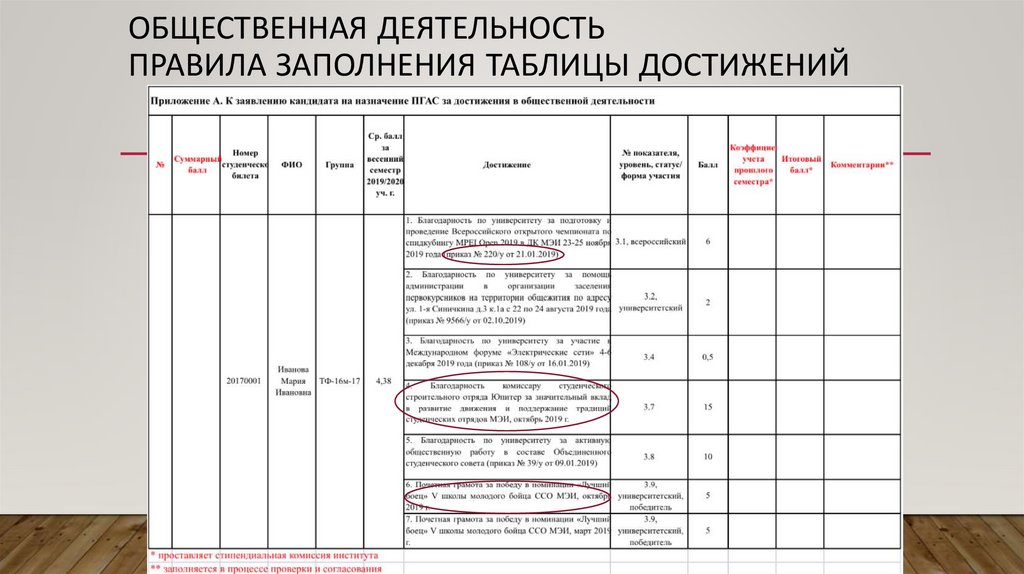 ОБЩЕСТВЕННАЯ ДЕЯТЕЛЬНОСТЬПРАВИЛА ЗАПОЛНЕНИЯ ТАБЛИЦЫ ДОСТИЖЕНИЙ