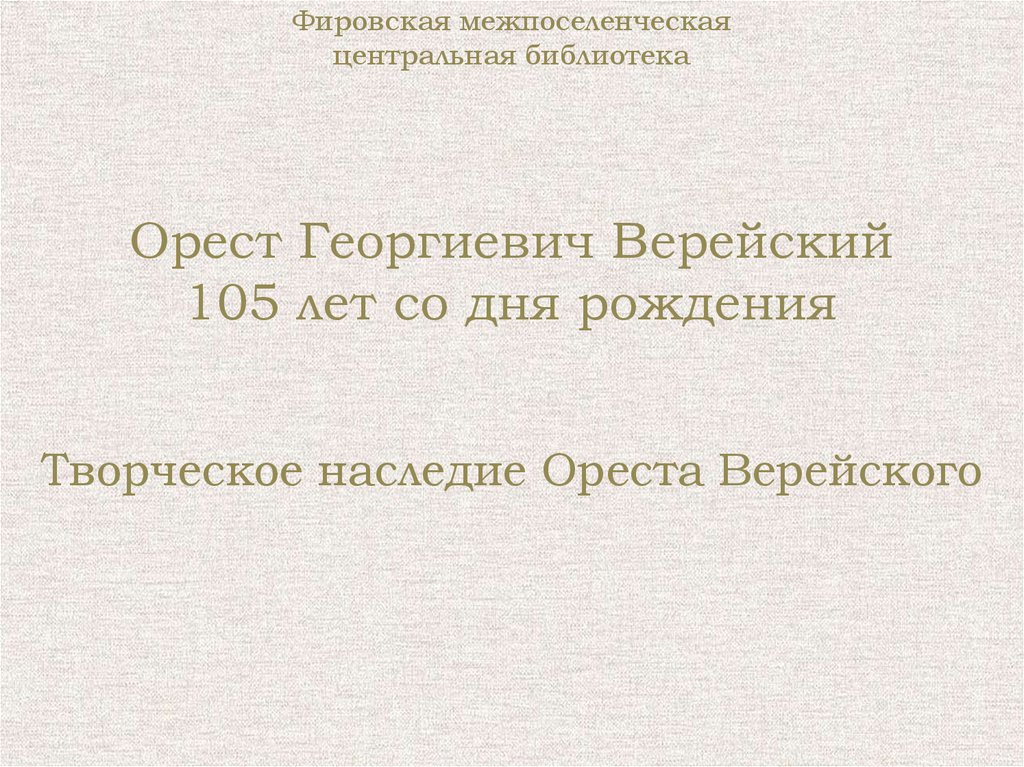 Творческое наследие Ореста Верейского