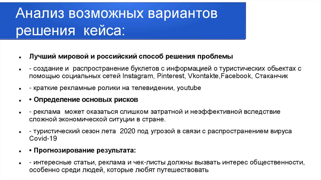 Анализ возможных вариантоврешения кейса: